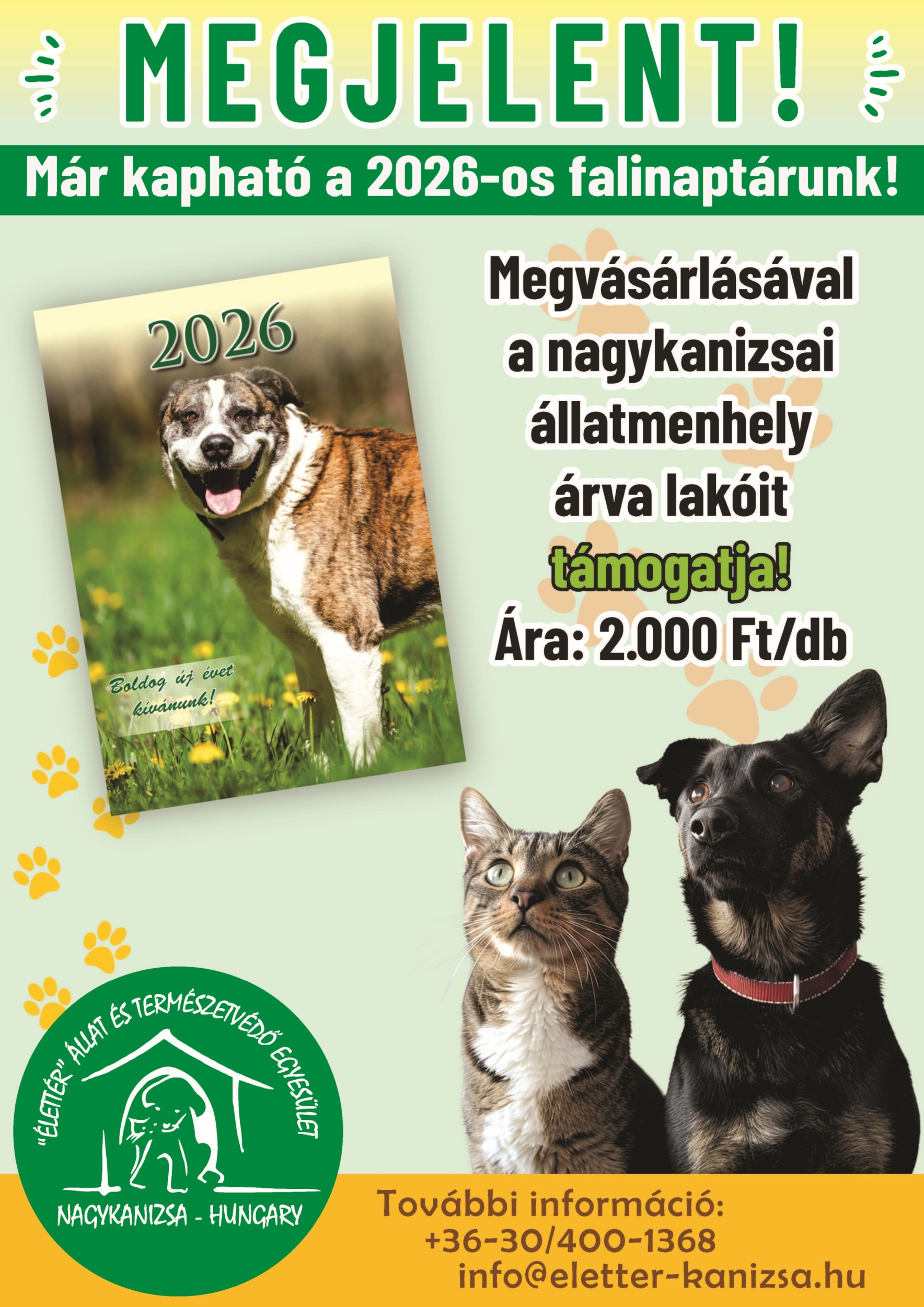 Minden darab megvásárlásával a nagykanizsai állatmenhely árva lakóit támogatja!