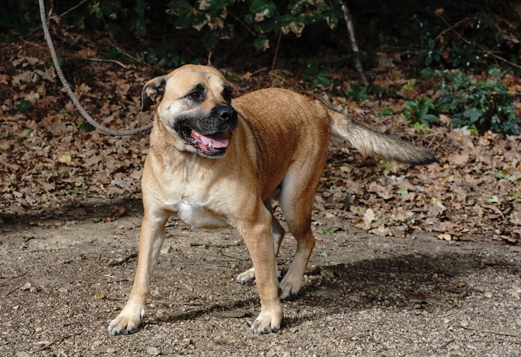 Gazdától került hozzánk. Nagyon kedves, eleven barátságos kutyus. Mérte és mozgásigénye miatt inkább kertes házhoz ajánlott. Kutyákkal összeszoktatható, macskákkal szembeni viselkedése nem ismert.
