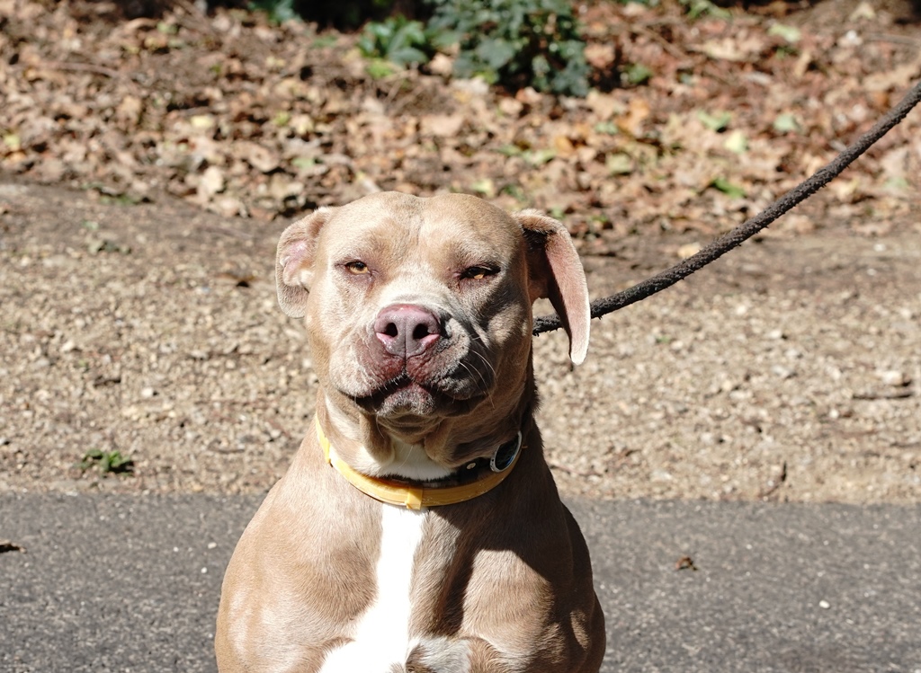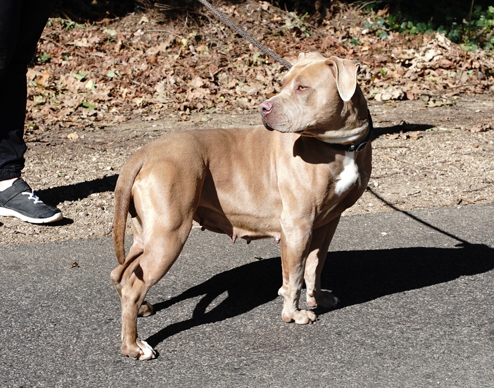 Közepes termetű, Amerikai staffordshire terrier jell., ivartalanított szuka.