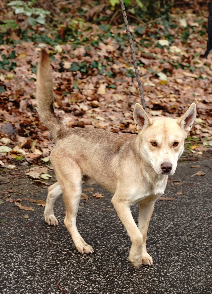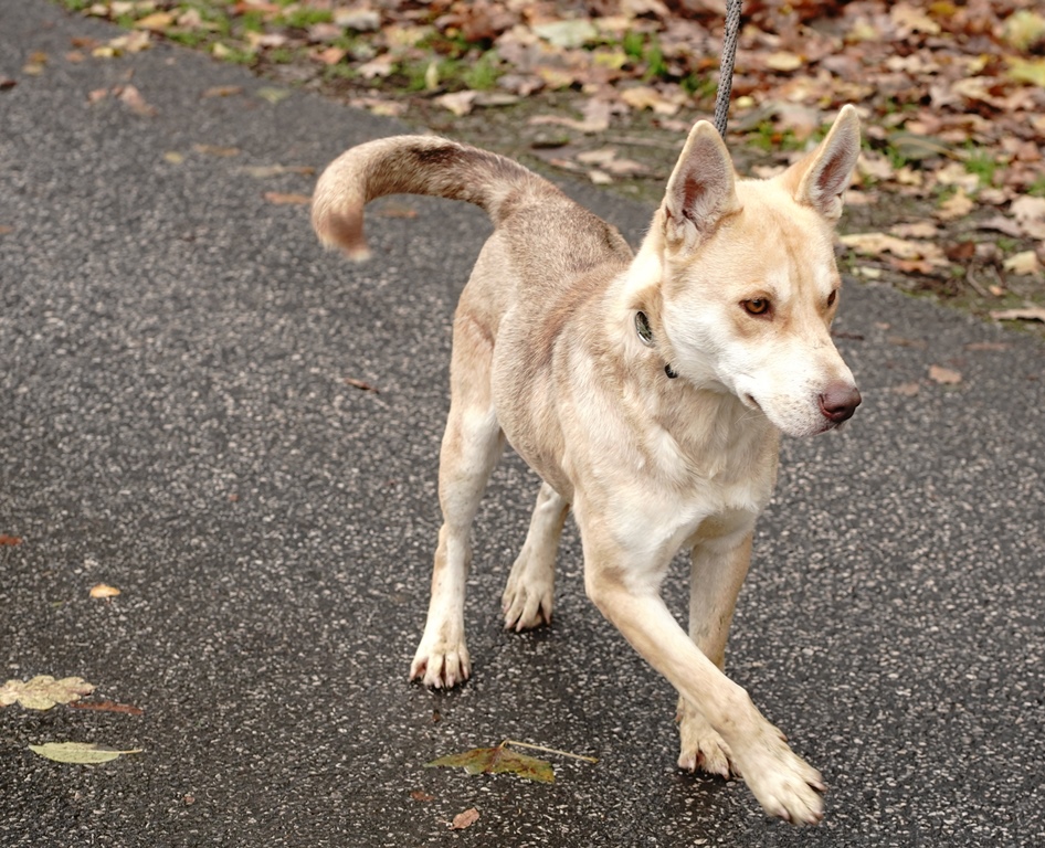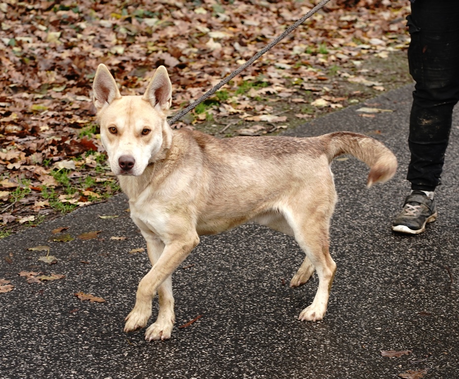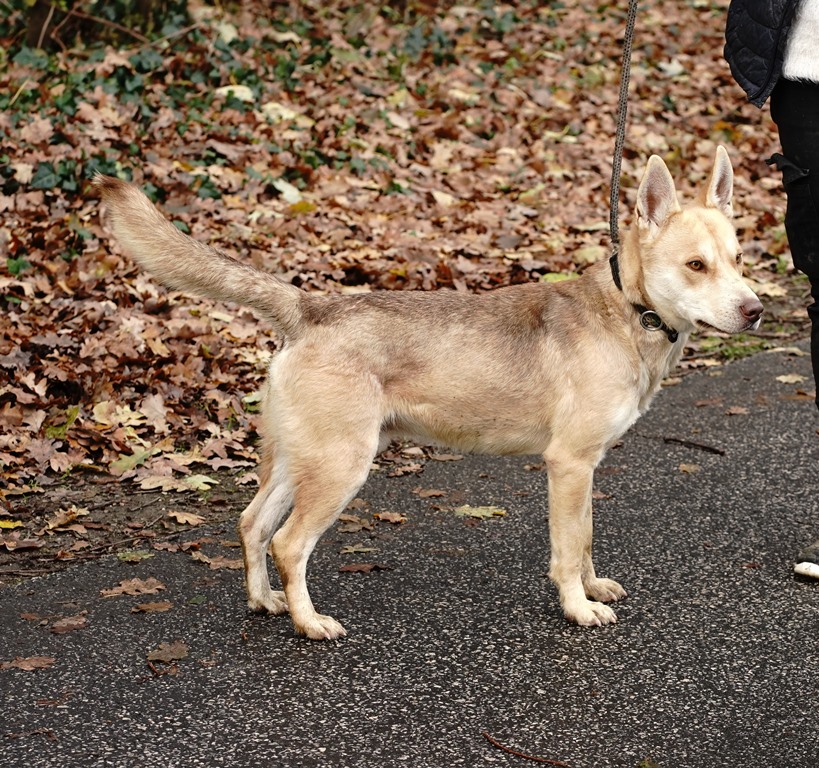 Kóbor kutyaként került hozzánk. Élénk, figyelmes természet. Kutyákkal összeszoktatható, macskákkal szembeni viszonya még nem ismert. Sok séta mellet akár lakásban is remekül érezné magát.